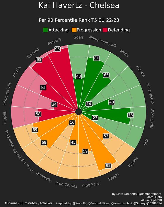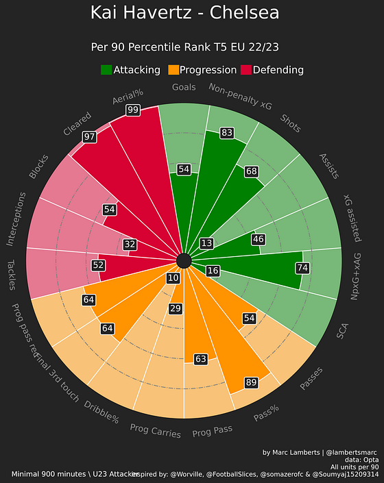 Three times Kai Havertz compared to peers with three times the filters altered a little bit. See how it will change the numbers? That’s why it’s important to think about it closely.